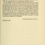 Finally, in Chapters 25 to 30 he attempts to trace the growth of the modern Western conception of marriage as a sacrament, as a cultural remnant of the idea of a holy marriage between a deity and a woman. Ideas of this sort are indeed present in our thinking to a much greater extent than most of us realize, and Briffault’s demonstration is fascinating; but on the sources of this need to preserve a sense of sacredness – so notably absent in many other fields – he has nothing to say.
