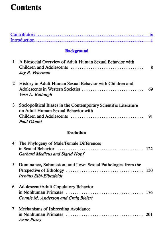 This book contains new biosocial theory and data as well as comprehensive reviews of the basic science and clinical literature on adult human sexual attraction to and behavior with children and adolescents. Whereas there is a large literature on the biosocial bases of human “sexual orientation,” this book is the first comprehensive biosocial examination of human erotic “age orientation.” Leading researchers from the natural and social sciences show how a cross-cultural, cross-species, and cross-historical approach to adult/nonadult sexual behavior gives new insights into the biosocial roots of human pedophilia as the phenomenon is found in contemporary industrialized societies.
