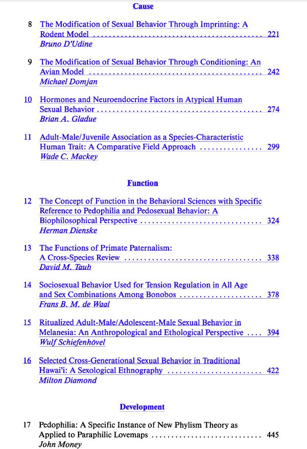 The book is organized around ethologist Niko Tinbergen’s four recommended dimensions by which a behavior should be understood: evolution, cause, function, and development. Using these four dimensions, the contributors to the book examine pedophilia at the levels of the molecule, tissue, individual, family, social group, and society. What are suggested by this multidimensional, multilevel synthesis are new evolutionary, psychological, and behavioral-physiological mechanisms by which this most important but heretofore academically neglected aspect of human sexuality could have evolved in modern societies. The material in the book is much broader than but very applicable to the topic of child sexual abuse.