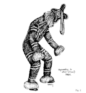 The conspiracy of the men’s cult generates a complimentary mystery: how much do the women and children know? Mehinaku and Mundurucu women are clearly aware of the existence of the sacred instruments, and it seems to be the threat of punishment that keeps them away from challenging the men. Among the Ilahita Arapesh, the women seem to have been generally in the dark about many aspects of the men’s cult, until the men voluntarily revealed their secrets and destroyed the cult in 1984 after decades of Christian missionary activity. Historian Henry Pernet argues that women may be well-aware of the true nature of much of the ritual paraphernalia across many societies with men’s cults, and that potential punishment effectively pressures them go along with the charade, even as they profess seemingly genuine credulity to the ethnographers who interview them.[27]