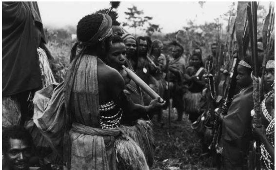 These include military training, supervision and education of boys in the masculine realm, the transmission of cultural knowledge surrounding hunting magic and warrior folklore, the organization of hunting, some separation or recognition of the differences between men and women, the socially sanctioned use of ritual paraphernalia and musical instruments such as flutes and bullroarers, and so forth. These distinctive customs anchor the men’s world in the clubhouse throughout Melanesia.