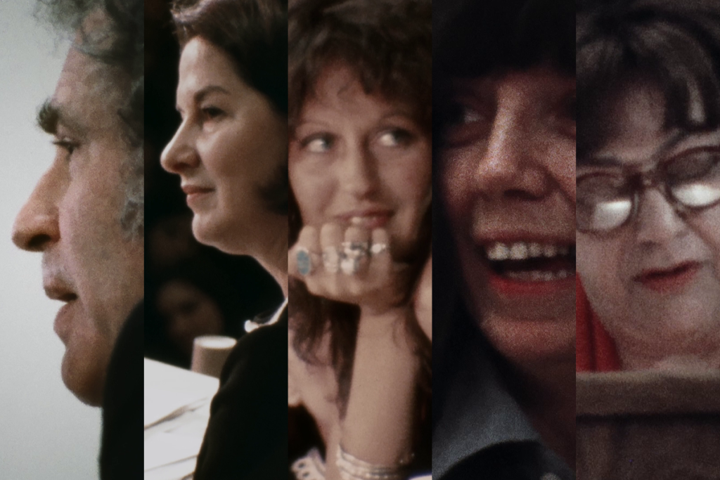 From the beginning, it was a contest between the outsize personalities of Greer and Mailer over who was to own the evening. Greer, six feet tall, with a mane of brunette hair and inch-long eyelashes, had attired herself in a fur stole and a long black sleeveless dress that showed off her arms and shoulders. Around her neck she wore an enormous silver pendant: a Venus’s mirror with a raised fist inside. At 32, she was at the peak of her good looks, which coincided with the peak of her readerly popularity (none of the 16 books she published after The Female Eunuch sold so well). It wasn’t hard for her to upstage Ceballos and Trilling in their ladylike suits and Johnston in her blue jeans and denim jacket. She sat herself down next to Mailer, the latter looking natty in a pinstripe suit and a frizz of graying corkscrew curls. Pennebaker’s hand-held cameras feasted on the electricity generated by the physical proximity of the two. “There was just so much sexual tension between Norman and Germaine, and I knew I wanted to keep that element in the film,” Hegedus recalled in a 2004 video interview accompanying the release of the film on Blu-ray. “But also I wanted to keep the humor, because it was very funny,” Hegedus said. “Norman was witty and funny, and Germaine was. And Jill was hysterical.”