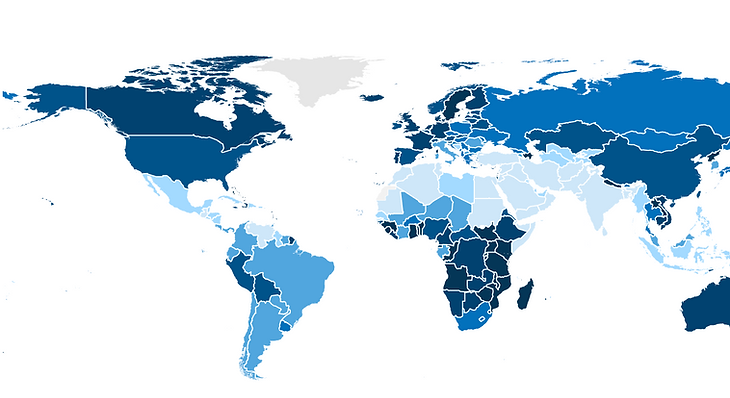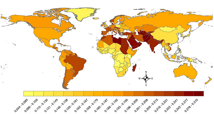 Ratio of female to male labour force participation (World Bank 2022)